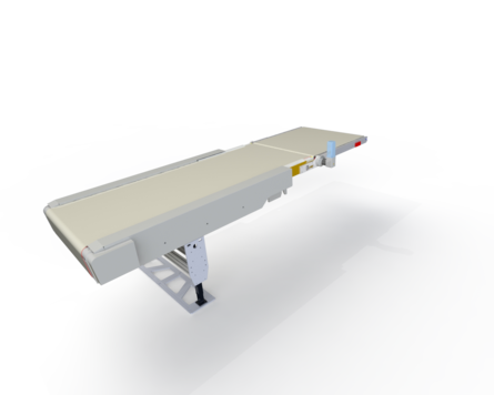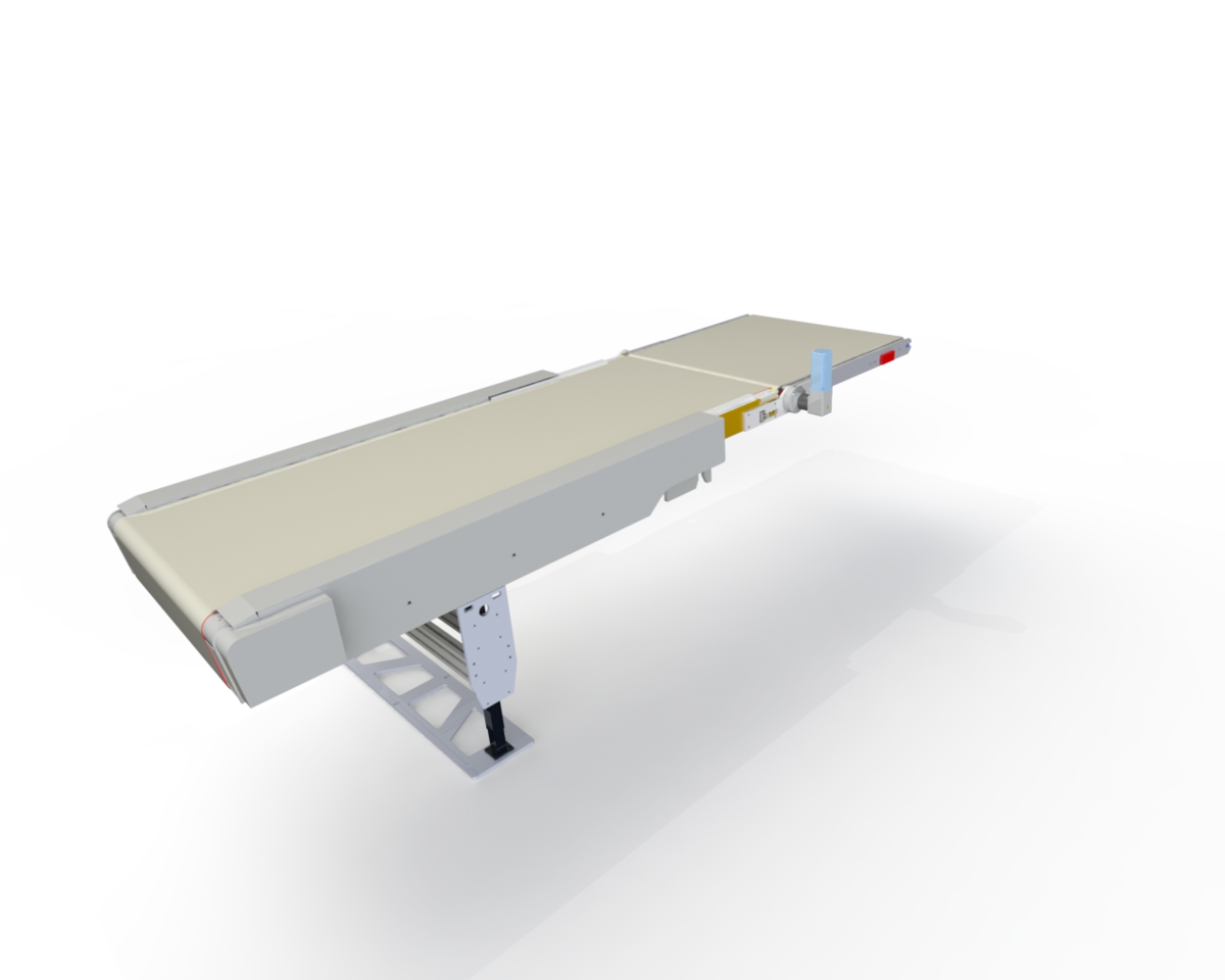 Band kann zur Verkürzung des Achsabstandes teleskopiert werden. Die Funktionsweise erfolgt hier manuell durch kundenseitige Ansteuerung. Anwendung z.B. zur Aussortierung von Gut- und Schlechtteilen oder für unterschiedliche Abwurfpunkte des Transportgutes.