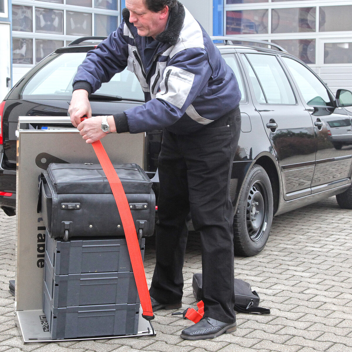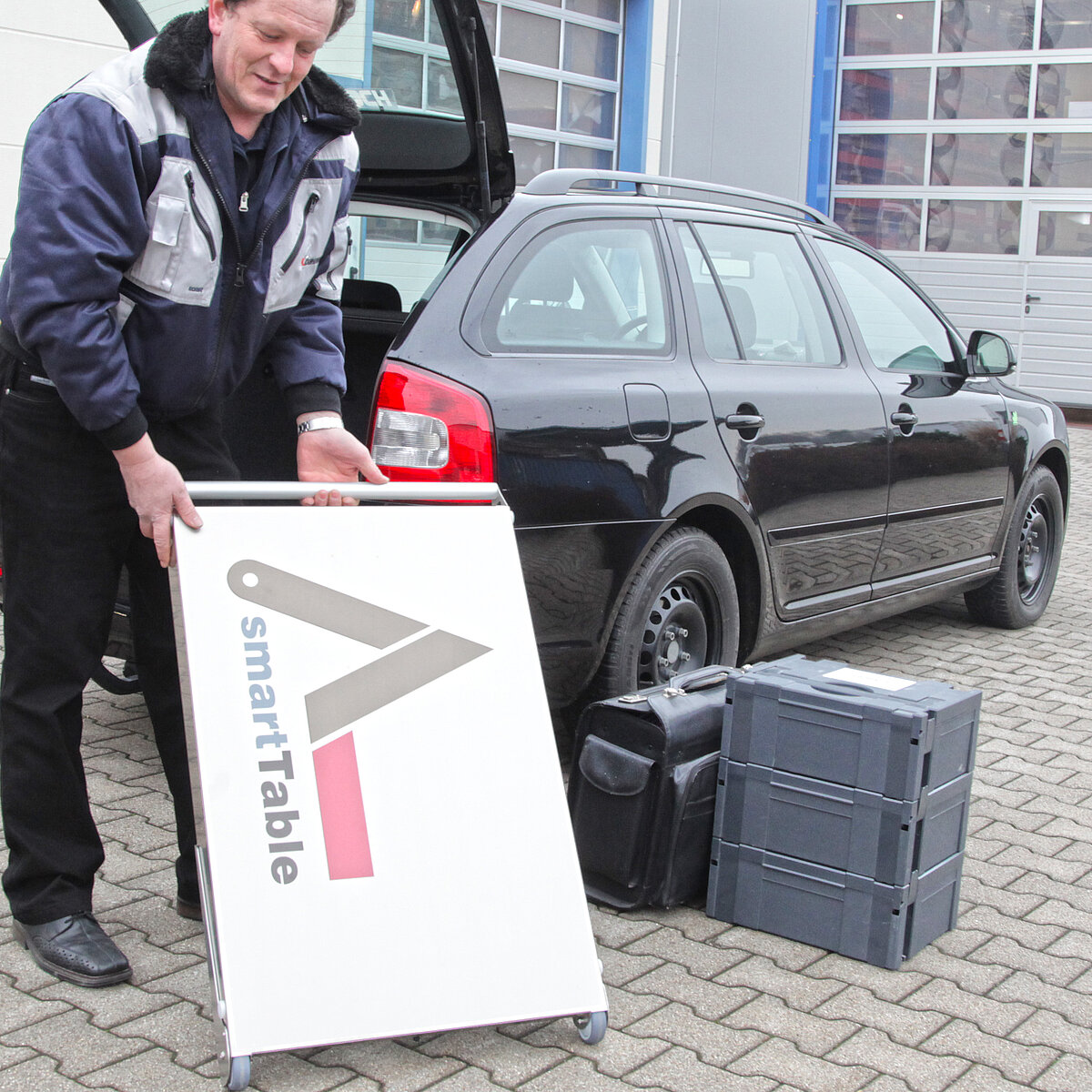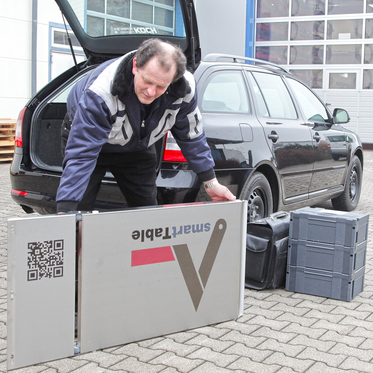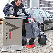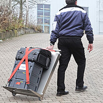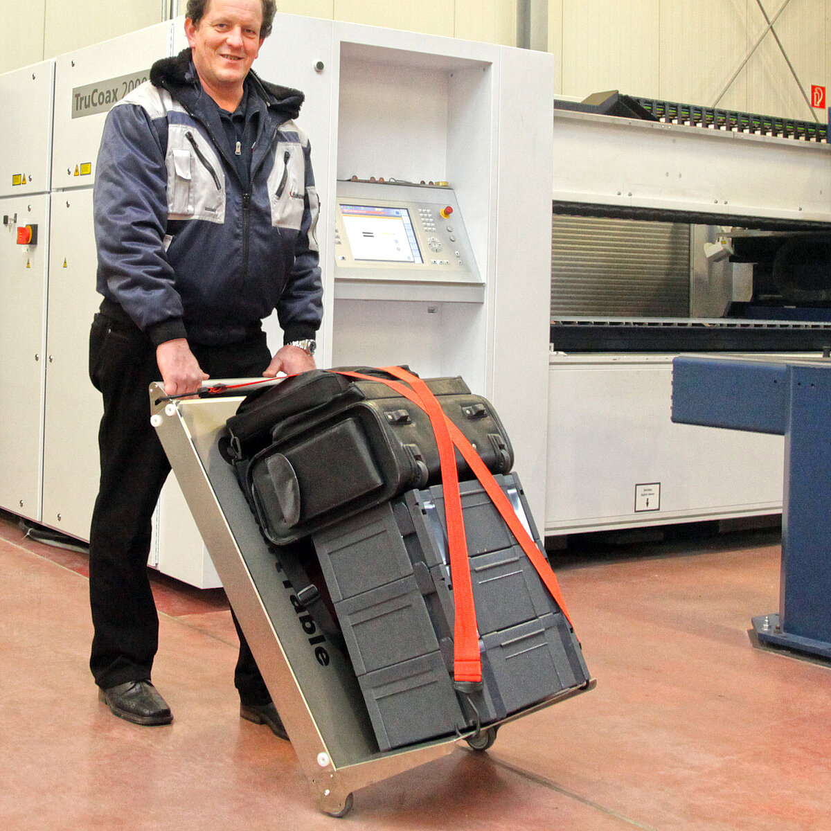 Sie kennen das: Sie sind auf Inbetriebnahme einer Anlage, zur Wartung oder Programmierung bei Ihrem Kunden. Vom Parkplatz bis zur Pforte sind Sie beladen mit Koffern, Taschen und Laptop, die sie kreuz und quer, hin und her durchs Werksgelände und Fertigungshallen tragen. Ein Weg genügt zumeist nicht. An Ihrem Einsatzort angelangt gibt es keinen oder nur unzureichend Platz für alle Ihre Utensilien.