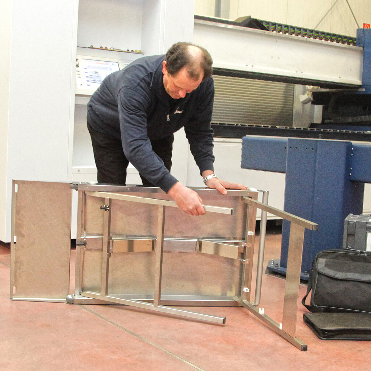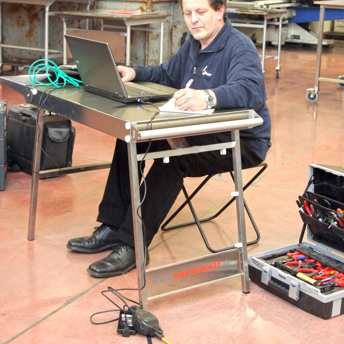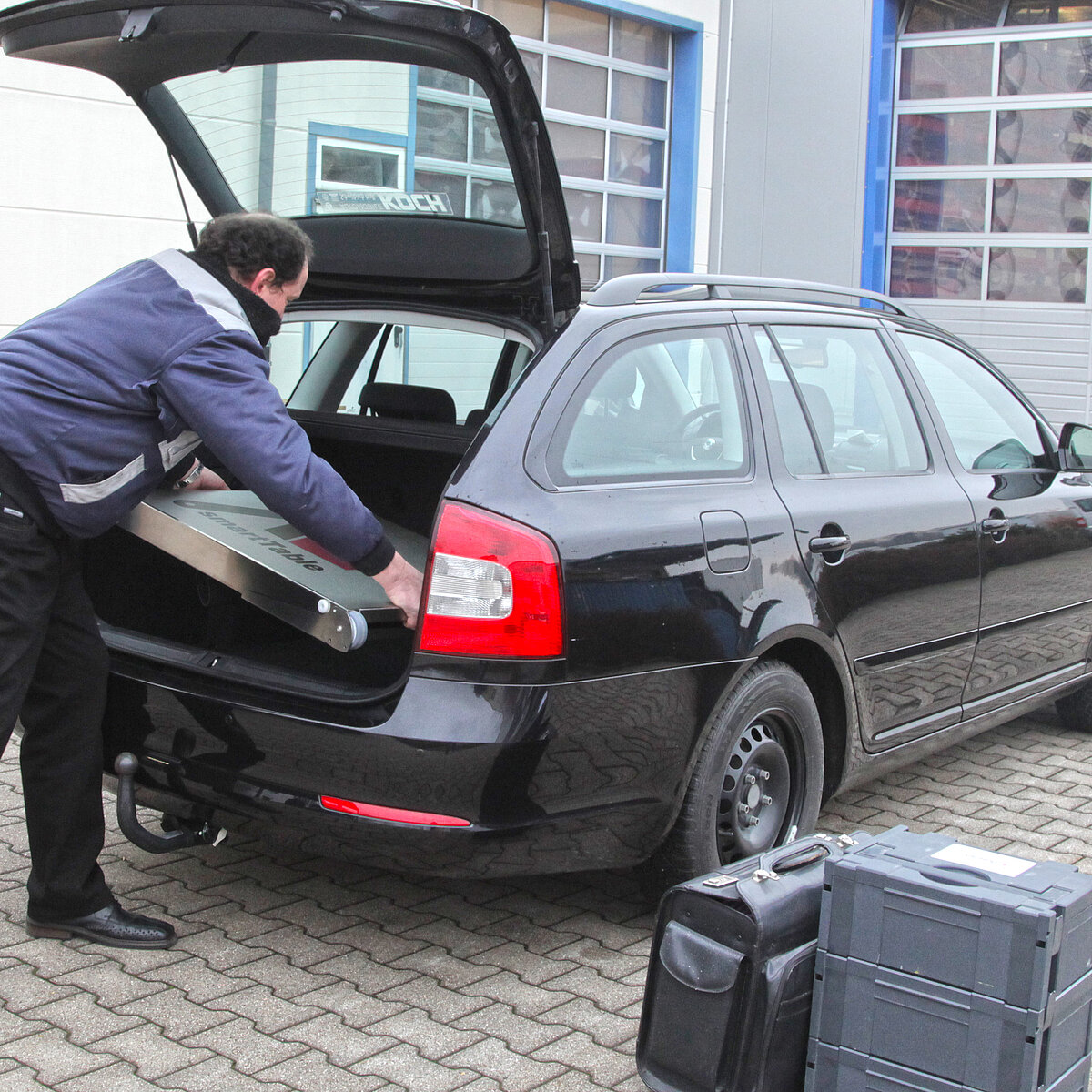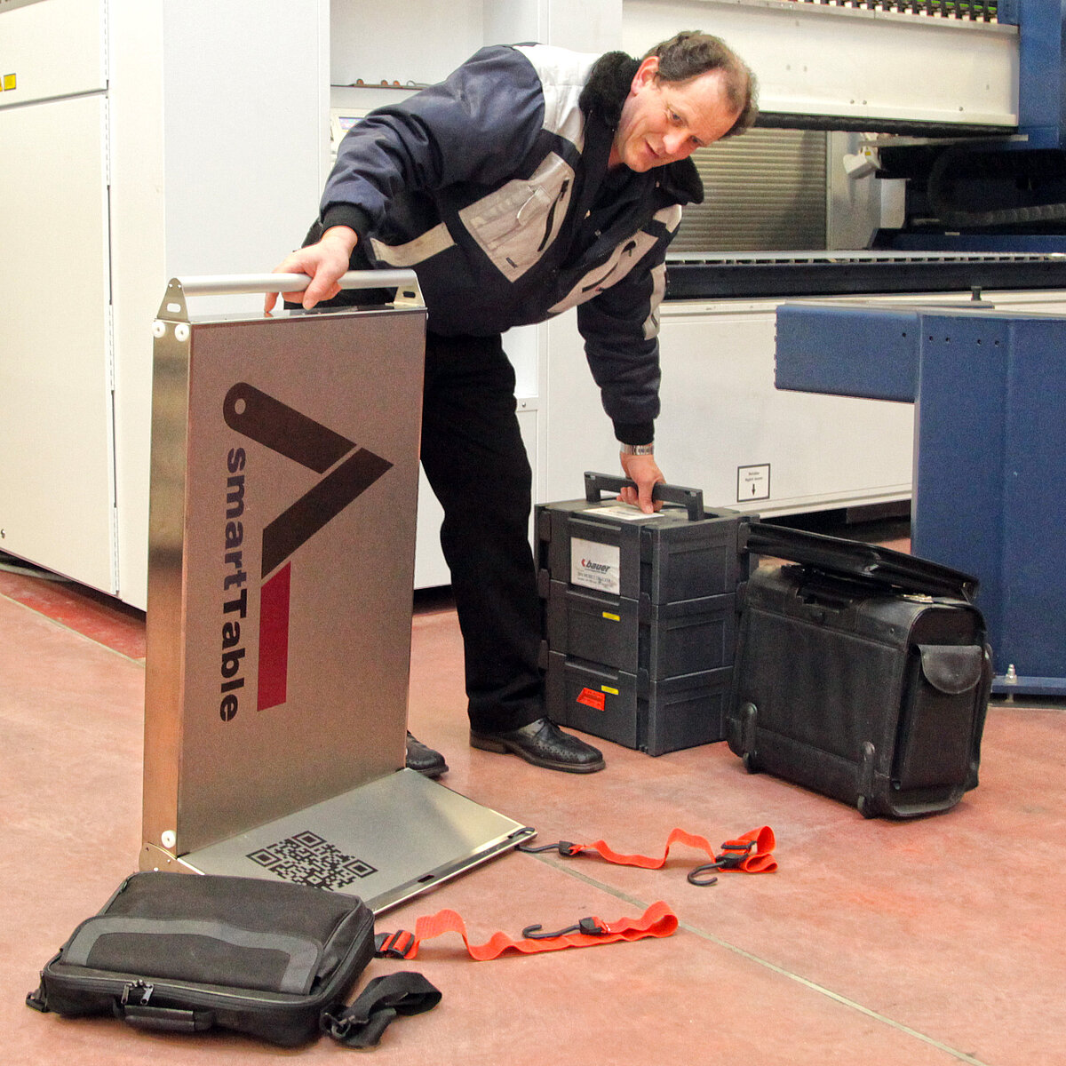 Sie kennen das: Sie sind auf Inbetriebnahme einer Anlage, zur Wartung oder Programmierung bei Ihrem Kunden. Vom Parkplatz bis zur Pforte sind Sie beladen mit Koffern, Taschen und Laptop, die sie kreuz und quer, hin und her durchs Werksgelände und Fertigungshallen tragen. Ein Weg genügt zumeist nicht. An Ihrem Einsatzort angelangt gibt es keinen oder nur unzureichend Platz für alle Ihre Utensilien.